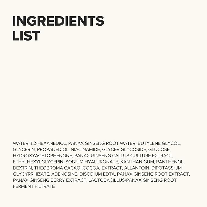 - [Ginseng hydration] Ginseng is a vital herbal ingredient that has been used for a long time for our body and skin health. It contains 80% of ginseng water and focuses on the benefits of ginseng itself, giving sufficient moisture and nutrition to the skin. It fills moisture and nutrition firmly to help keep your skin moisturized for a long period of time.