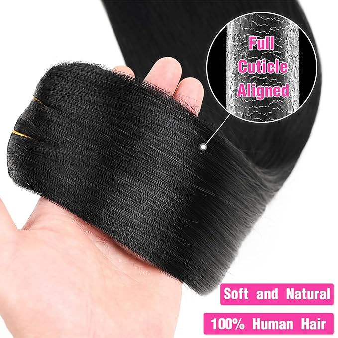 Clip In Human Hair Extensions,Double Weft Hair Extensions 70g 7pcs Silky Straight Human Hair Clip In Extensions #1B Natural Black 14inch