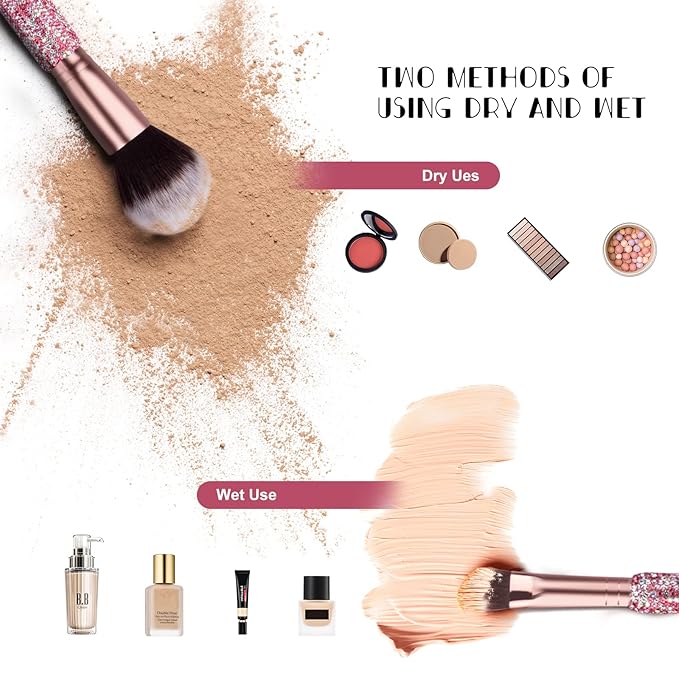 - 【STYLISH】These brushes stand out from other plain and simple ones out there, adding a pop of color and bling to any vanity space. It’s covered in high-quality rhinestones that are securely bonded on with precision and care to give you that beautiful sparkling bling that you always wanted. If you love makeup and bling, this is the perfect set for you!