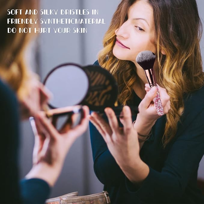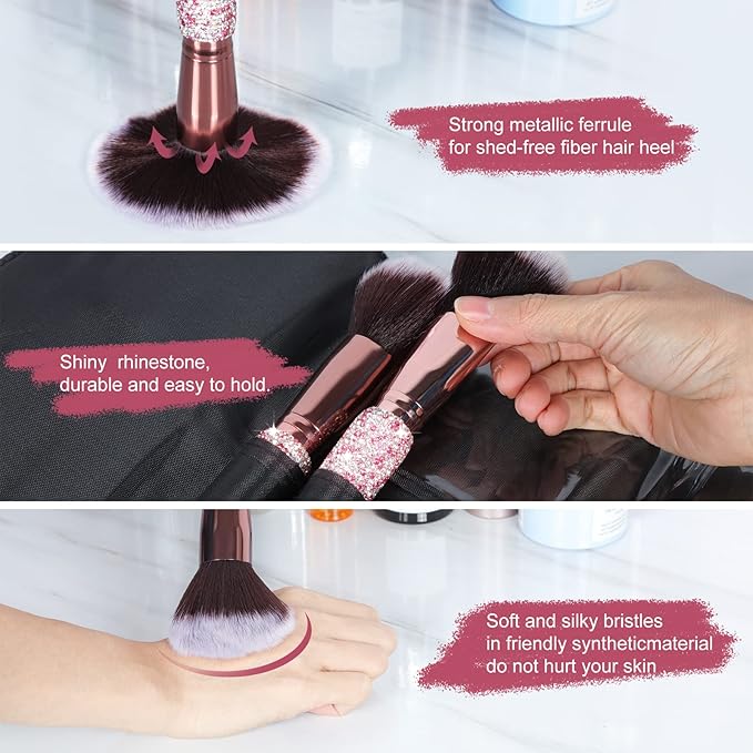 - 【HIGH QUALITY】This makeup brush set is a must-have for every woman to have in their collection, and if you are looking for the perfect one to suit your glamourous style, this is the one for you! These brushes are extremely soft and made with quality materials, so you never have to worry about your makeup being poorly blended. The handles are bedazzled in luxurious rhinestones that sparkle and shine. This glamourous brush kit will surely elevate your everyday makeup experience.