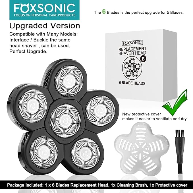 - ★With Blade Cover & Brush★Foxsonic 6 Blades head shaver replacement heads for Mainstream shaver brands, FOXSONIC brand Universal head shaver replacement heads Compatible mainstream shaver brands, Same bayonet interface, can be used.