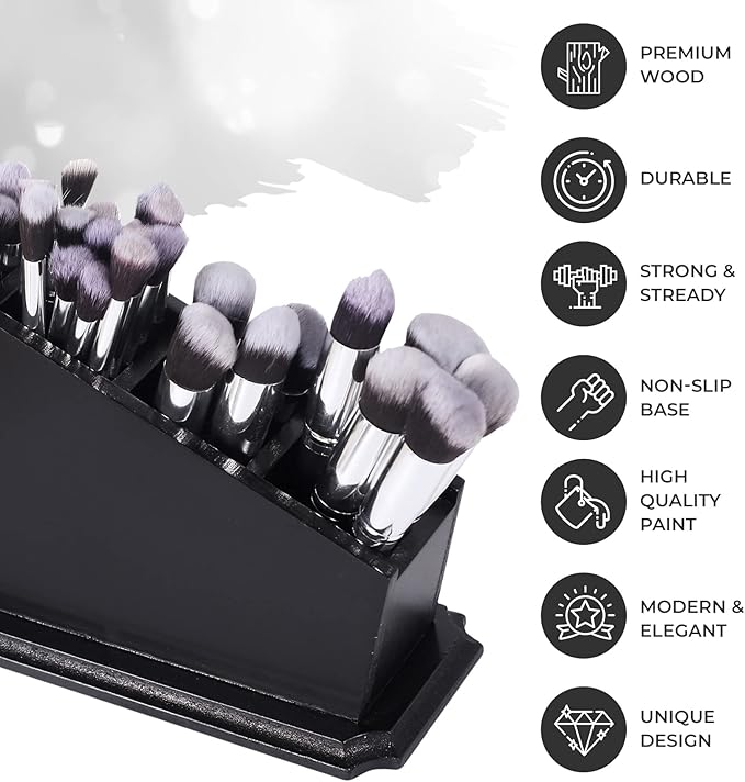 - 【Large Capacity】:The practical and elegant gothic home decor makeup organizer has four compartments, and sits on a stylish base. Brush holder holds a impressive amount of makeup brushes, tools, and other cosmetics and goth accessories.