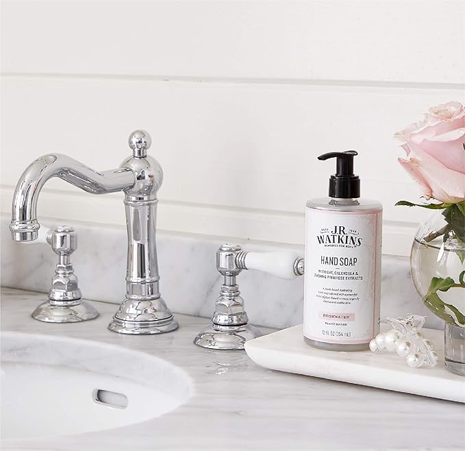 J R Watkins Moisturizing Gel Hand Soap, Rosewater, Plant Based Ingredients, 12 oz Pump