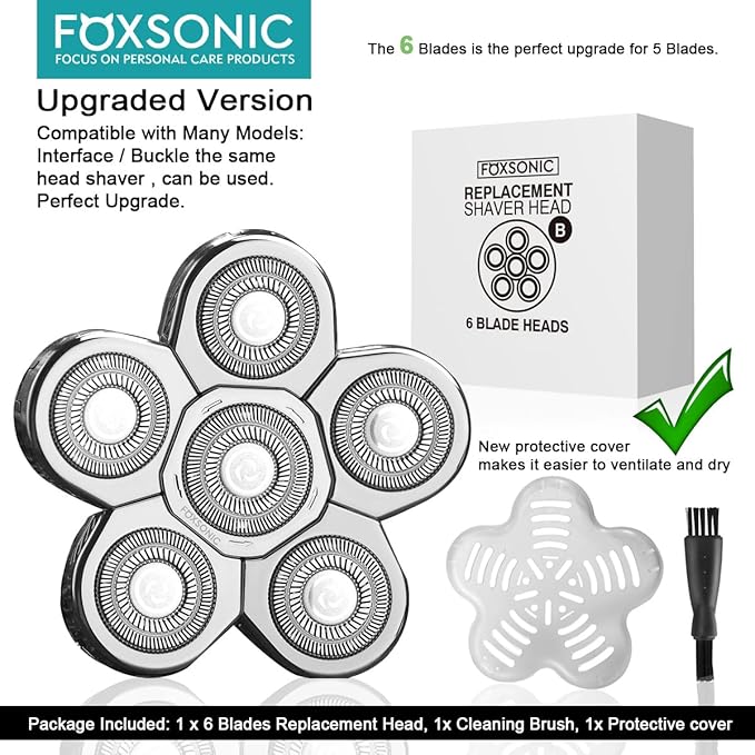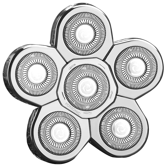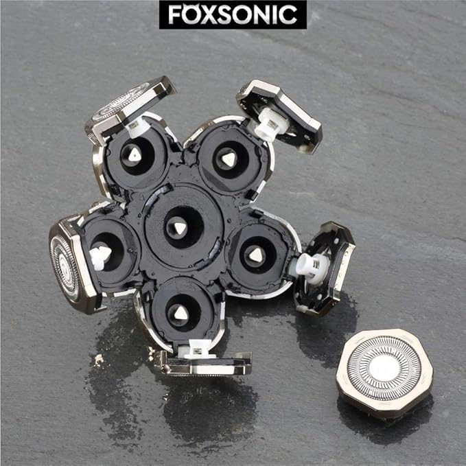 - ✔ Men's Electric Shaver Replacement Heads, Foxsonic men’s electric shavers features special electroplate surfaces for anti-abrasion, double-ring hypoallergenic stainless blades and a powerful motor. Its 6d flex floating heads rotate to follow the contours of your face, head, neck and jaw, offering closer and cleaner trimming without skin irritation.