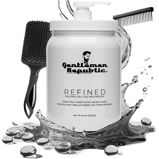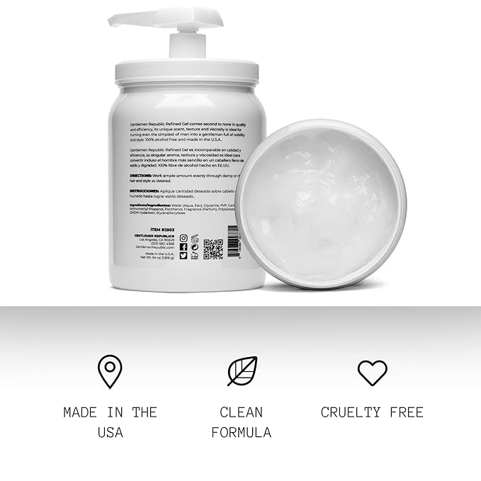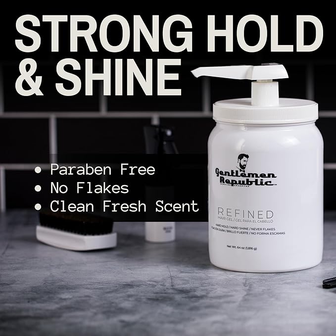 Gentlemen Republic 64oz Refined Men's Hair Gel - Professional Formula for 24 Hour Shine and Strong Hold, Humidity Resistant Styling Gel for hair W/Pump, 100% Alcohol-Free and Never Flakes, Made in USA