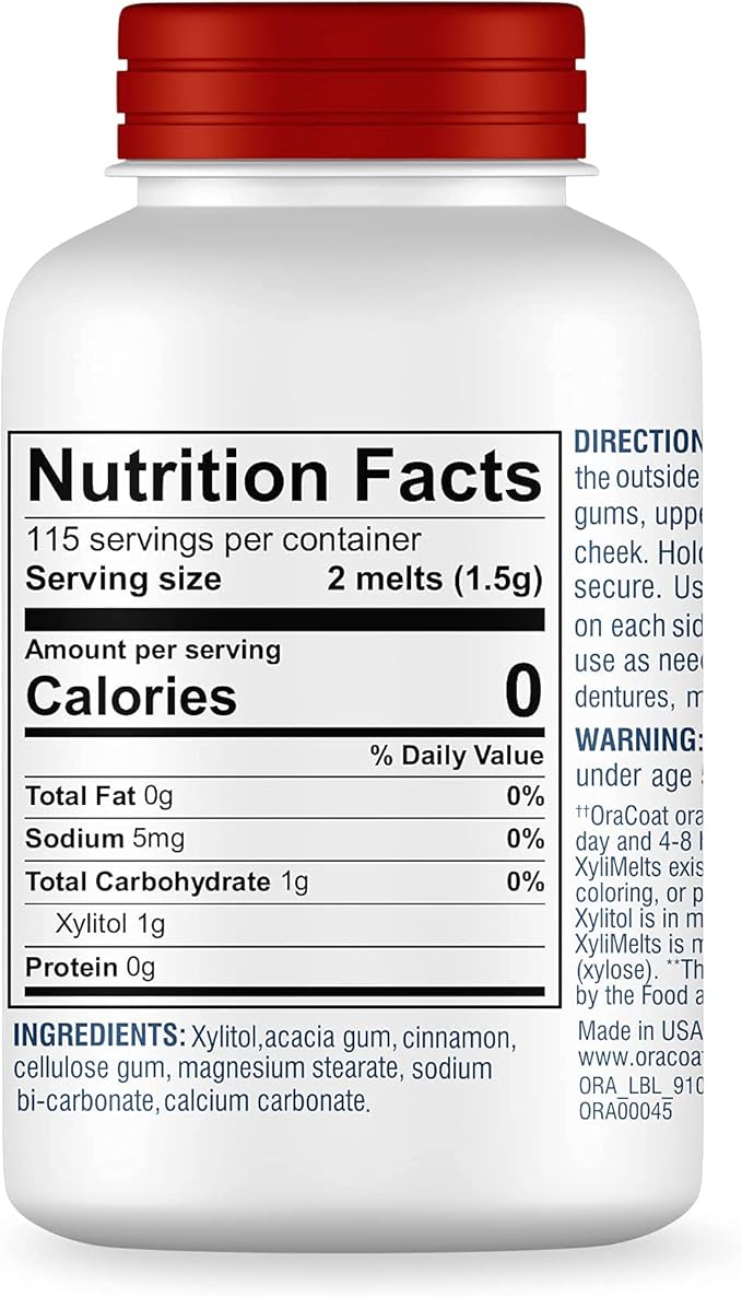 Oracoat XyliMelts for Dry Mouth Night Time or Day - Moisturizing Dry Mouth Adhering Discs, Sugar Free with Xylitol, 230 Count, Cinnamon, 8-Hour Relief