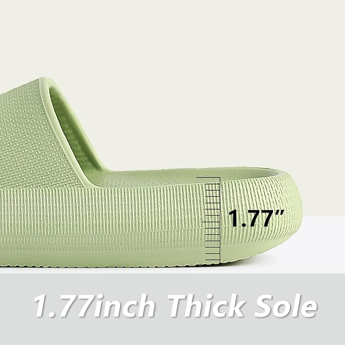 • ๐Ÿ‘๐“๐ก๐ข๐œ๐ค ๐’๐จ๐ฅ๐ž ๐ƒ๐ž๐ฌ๐ข๐ ๐ง: Built with 1.77 inch thick sole enhance cushioning.Cloud slippers can be worn all day long without any fatigue caused to your feet or ankle, allowing you to walk like a massage.