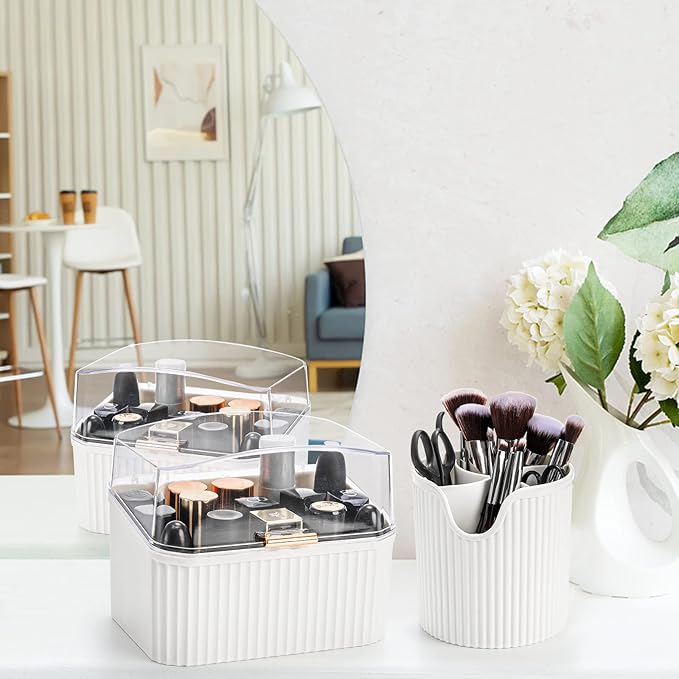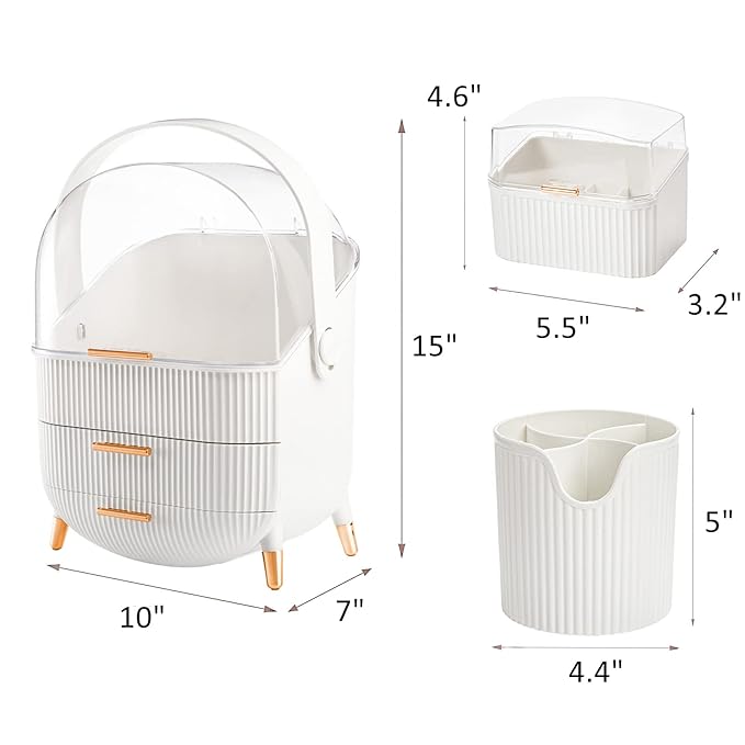 - Dustproof and Waterproof Design: This makeup organizer is decorated with a clear lid to protect your skincare, makeup, and more from water and dust. Besides, It' s convenient for you to see the items in the top through the clear lid, great for bedroom, bathroom, dressing room use.