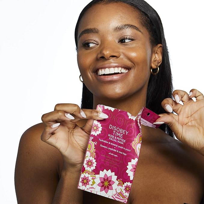 Pacifica Disobey Time Rose & Peptide Facial Sheet Mask Hydrating Anti-Aging Mask for Fine Lines & Dry Skin Infused w/Hyaluronic Acid & Chamomile Clean Beauty Vegan & Cruelty-Free Dermatologist Tested