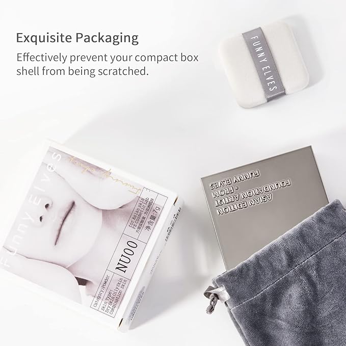 Funny Elves Pressed Powder Makeup Face Long Lasting Photosensitive Concealer Asian Skincare Cosmetics Smooth (NU00) 1 Count