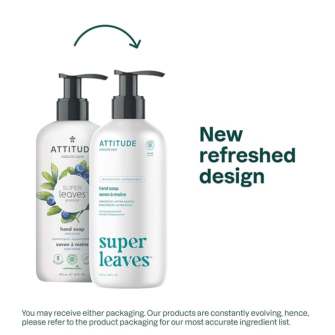 ATTITUDE Liquid Hand Soap, EWG Verified, Plant and Mineral-Based, Vegan Personal Care Products, Unscented, 16 Fl Oz (Pack of 6)