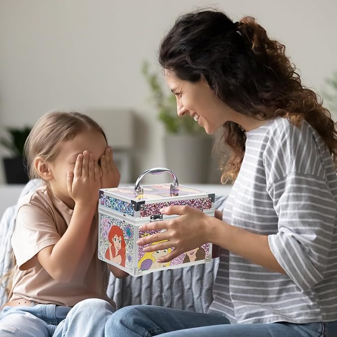 Disney Princess Train Case Beauty Set, Kids Makeup Kit for Girls, Real Washable Makeup Set, Play Makeup, Party Favor, Birthday, Ages 3 4 5 6 7 8 9 10 11 12 by Townley Girl