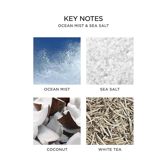 - FRESH AQUATICS - Hints of sea salt, white tea, and coconut combine with the refreshing essence of a gentle ocean mist in this sophisticated fragrance, letting you escape to the seaside without leaving your home.