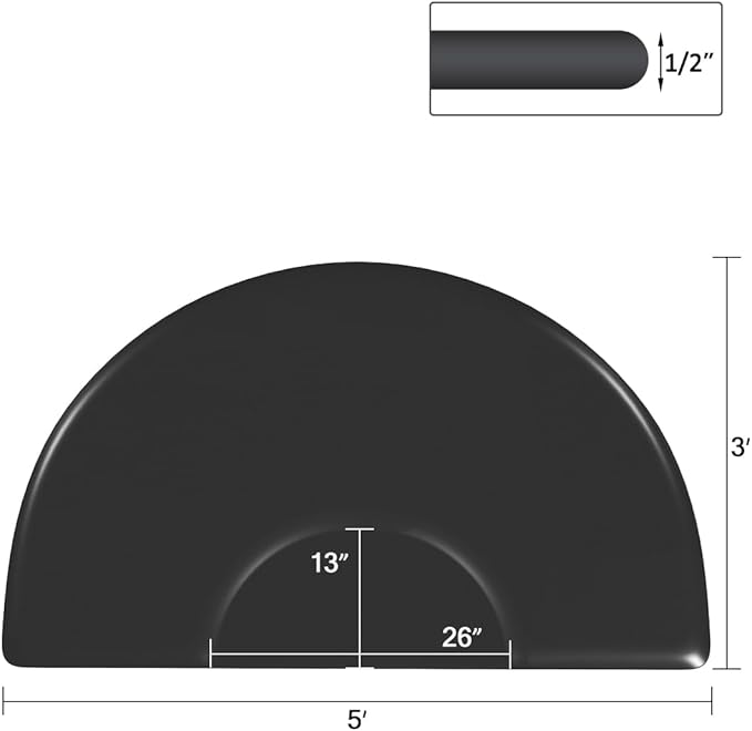 Artist hand 3 ft. x 5 ft. Barber Chair Mat Salon & Barber Shop Chair Anti-Fatigue Mats Comfort Salon Chair Mat,Black Semi Circle - 1/2 in. Thick,2 PCS