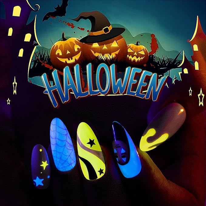 RARJSM Nail Art Gel Set, Glow In The Dark Gel Liner Nail Art Polish Luminous Gel Design Nail Polish Neon Fluorescent Drawing Painting Nail Art Polish