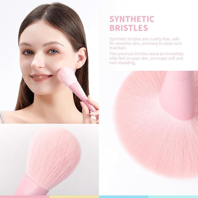 - ๐๐๐๐ ๐๐ง & ๐๐ซ๐ฎ๐๐ฅ๐ญ๐ฒ-๐ ๐ซ๐๐ ๐๐ซ๐ข๐ฌ๐ญ๐ฅ๐๐ฌ: The bristles are well made of durable synthetic fiber - soft and silky nylon, ensuring for long time use. All the makeup brushes are fine and dense, suitable for even the most sensitive skin. With a great holding power of powder, the brushes would be a good helper to create a flawless look