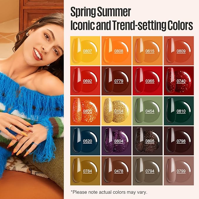 MEFA Gel Nail Polish Set, 23 Colors Brown Orange Nail Polish Set Gold Glitter Yellow Nail Polish Soak Off Red Shimmer Gel Nail Gifts for Women Girl DIY Salon Home Manicure