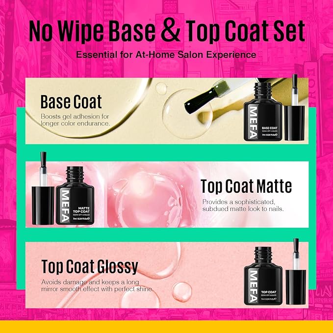 • Healthy Formulation: With upgraded, natural ingredients, this kit ensures nail safety and smooth gel application; it's convenient and healthy; the gel nail polish texture is sleek, brush stroke-free, effortlessly self-leveling without air bubbles