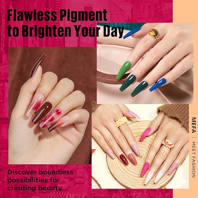 - 32 Colors Gel Polish: MEFA’s fall-winter set features 32 shades (7 ml each), including deep red, burgundy, purple, and champagne gold; perfect for autumn and winter, these trend colors offer looks from cozy purple to elegant nude