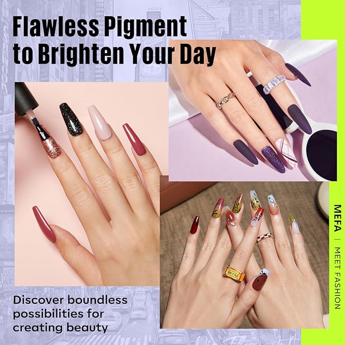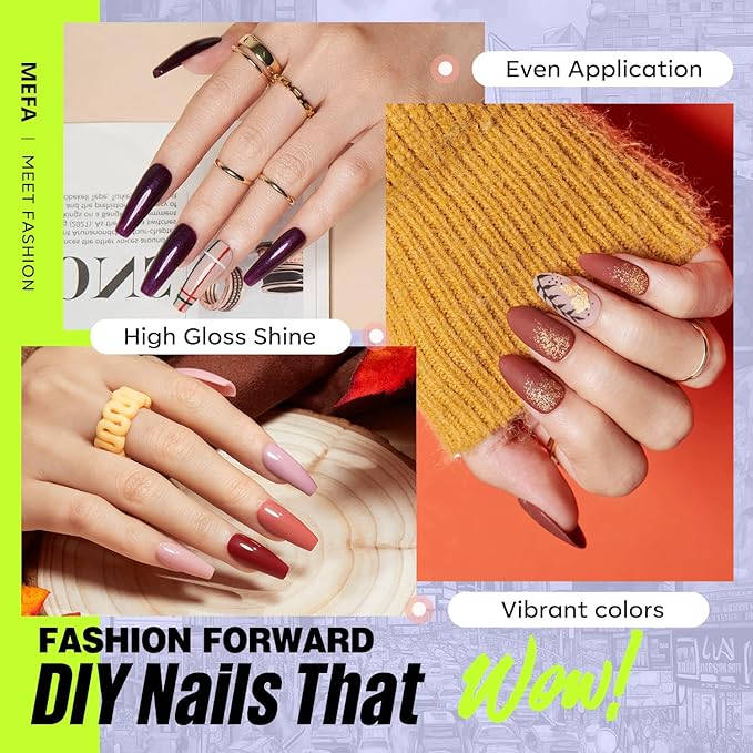 - Long-lasting Salon Quality: This forest tones collection set can be used with all brands of top and base coat, but of course, with MEFA the effect is better; this set is long-lasting for two weeks with perfect shine under the proper application