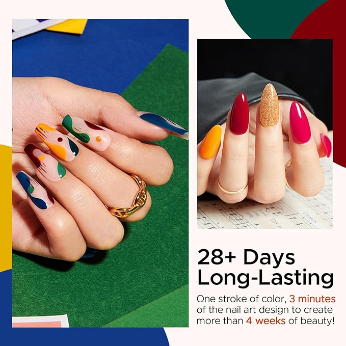 - HEALTH&ECO-FRIENDLY: The nail polish set is made of non-toxic ingredients which makes the gel nail polish safe and low odor. You can DIY your nails the way you want without causing any harm to your nails and the environment