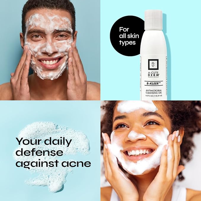 A-Cute Derm B-Kleer Cleansing Gel Acne Cleanser that Purify and Protect Your Skin from Clogged Pores for All Skin Types (4oz)