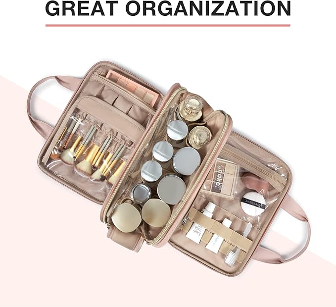 BAGSMART Toiletry Bag for Women, Large Toiletry Bag Water-resistant Makeup Cosmetic Organizer Bag Door Room Essentials for Accessories, Shampoo, Full Sized Container, Toiletries (Medium, Pink)