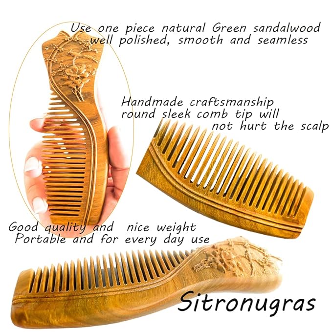 - Reduce tangles:Green sandalwood hair comb easy to hold, feels comfortable in-hand, the teeth are well spaced and don't feel sharp against your scalp. Reduce tangles and frizz.