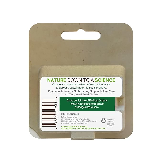 - The razor blade refills pack is designed with simplicity and ease of use, embodying Bulldog's straightforward skincare approach.
