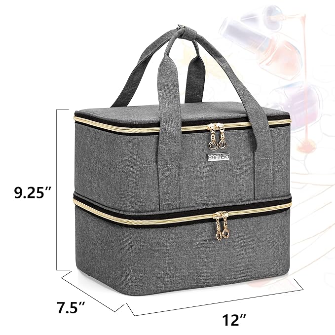 BAFASO Nail Polish Organizer Holds 40 Bottles (15ml - 0.5 fl.oz) and a Nail Lamp, Nail Polish Carrying Case with Manicure Tools Storage Sections (Bag Only), Gray