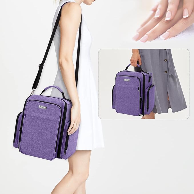 BAFASO Nail Polish Organizer Holds 48 Bottles (15ml - 0.5 fl.oz) and a Nail Lamp, Large Nail Polish Case with 2 Removable Pouches and Multiple Storage Sections (Patented Design), Purple