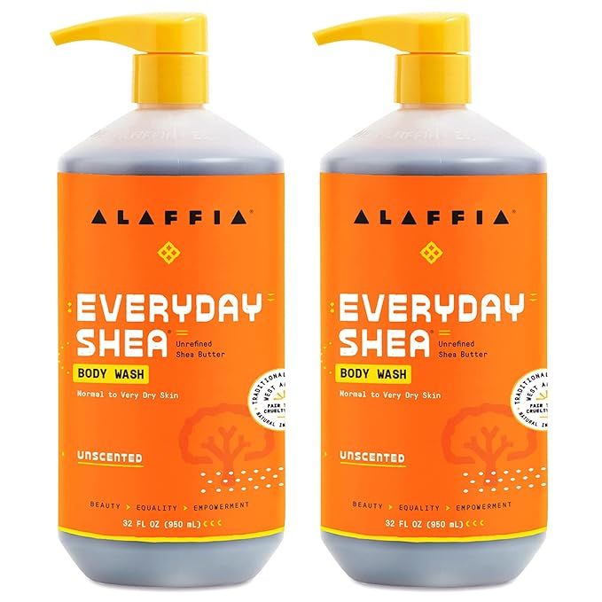 Alaffia Everyday Shea Body Wash, Naturally Helps Moisturize and Cleanse Without Stripping Natural Oils with Fair Trade Shea Butter, Neem, and Coconut Oil, Unscented, 2 Pack - 32 Fl Oz Ea