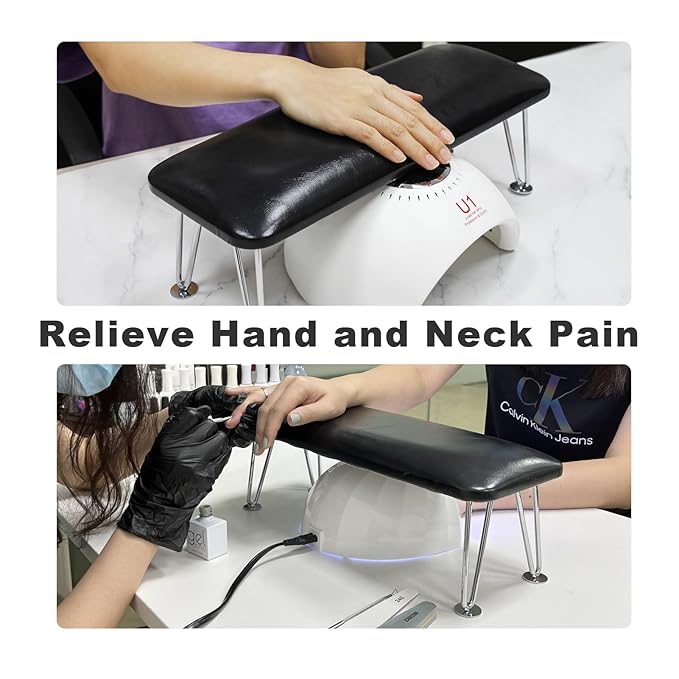 - The size of the manicure hand rest is one of the largest on the market and all the nail lamps and nail dust collectors can fit underneath.