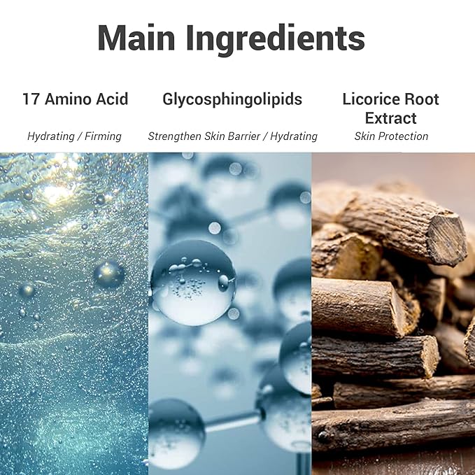 - HELPS TO REGULATE SEBUM AND pH LEVEL: It gets absorbed in your skin pores and, the amino acids help tighten the skin while controlling sebum production and regulating pH levels.