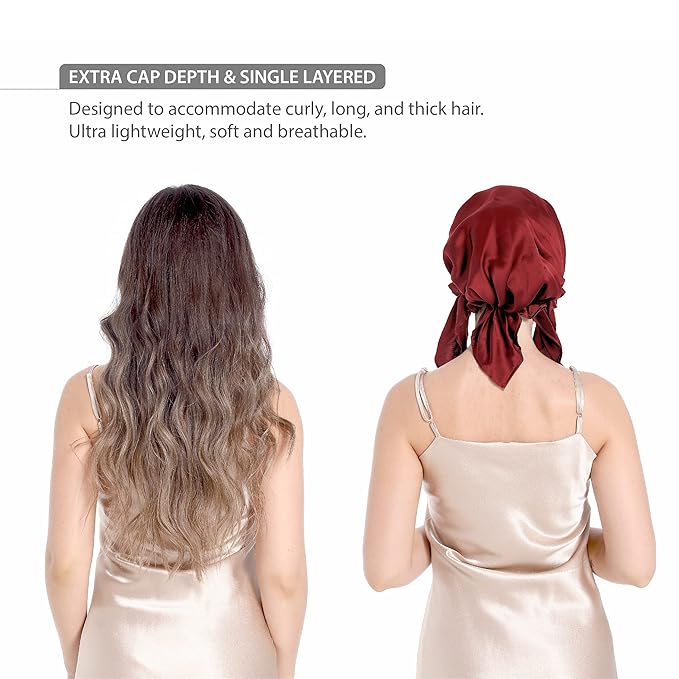 - EXTRA LARGE AND DEEP: Looking for a large bonnet for thick hair or big head? Then look no further! Our silk cap with extra depth covers up to 30-inch long hair.
