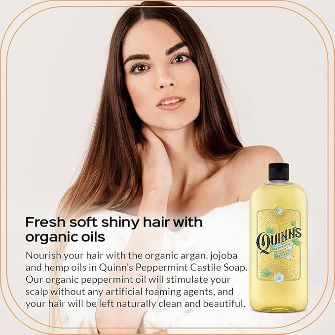 Quinn's Pure Castile Organic Peppermint Liquid Soap 32 oz Alcohol Free Pink Grapefruit and Orange Rind Witch Hazel with Aloe Vera 16oz