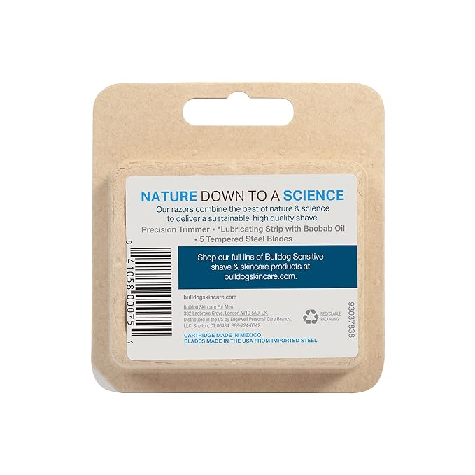- The razor blade refills pack is designed with simplicity and ease of use, embodying Bulldog's straightforward skincare approach.