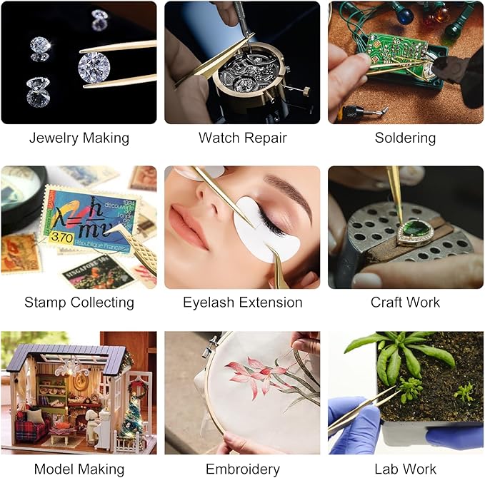 - COMFORTABLE HAND FEELING: These tweezers can adapt to a long-term work with the appearance of smooth lines and fine processing. Light weight so does not cause hand fatigue.