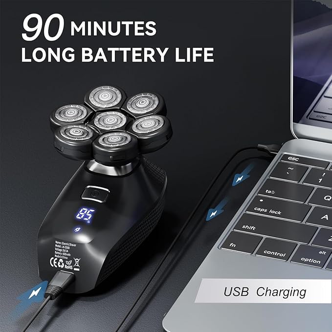 - 【7D FAST & SMOOTH FLOATING SHAVING HEAD】 Our electric razor with 7D floating heads and skin-friendly & durable blades blades, 360 ° surrounded by shaving, large touch surface, can quickly shave clean. The mens shaver can automatically adapts to every angle of your face, neck and head even the jaw, to remain close contact with skin, providing you a efficient, comfortable, smooth and close shave experience.