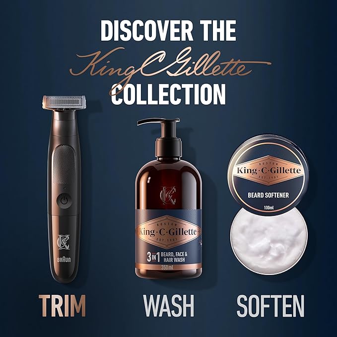 King C. Gillette Men's All-in-One Styler Cordless Stubble Trimmer with 4D Blade and 3 Interchangeable Combs, Waterproof, Beard Trimmer, Beard Care, One Blade Lasts 6 Months