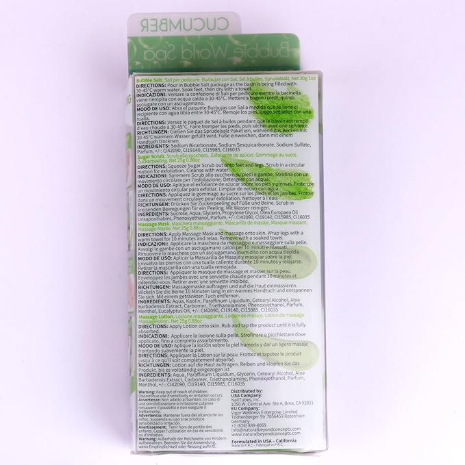 Pedicure Kit Foot Soak Set: Bubble Salt, Sugar Scrub, Massage Mask, Massage Lotion in a Box, 4 Step Foot Spa Kit for Dry Feet,Tired Feet(1 Set Cucumber)