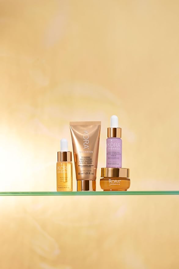 - Radiant Skin Ritual: KORA Organics Turmeric Brightening & Exfoliating Mask in a travel-size offers an invigorating face mask skin care experience; formulated to revitalize and smooth while purifying pores, it enhances your skin's natural radiance