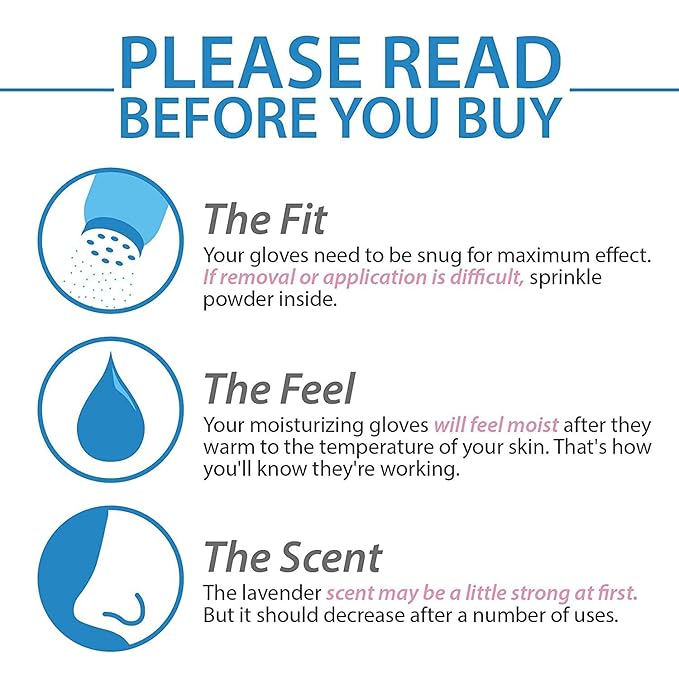 - How They Fit: Gloves fit small and medium women's and men's smaller hands and feet. Should be gently snug. For smoother application you may choose to occasionally sprinkle a small amount of baby powder inside gloves.