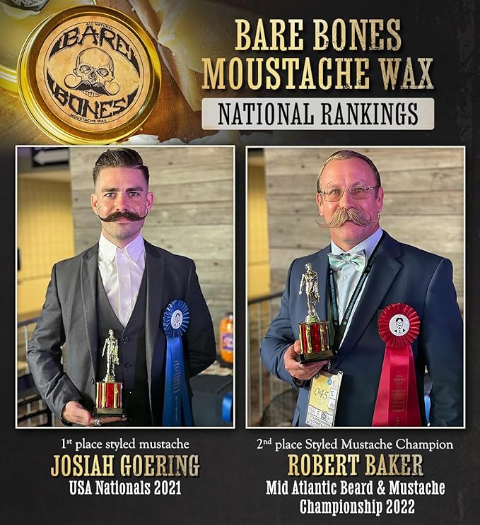 - Caution For Serious Mustaches Only - If you are a man looking to take his mustache game to the next level Bare Bones is the mustache wax for you. The right ladies will take notice & people will talk to you regularly about your stylish mustash grooming skills. NO hairdryer or a heat source is necessary to warm the wax. Just like the name, Bare Bones is the perfect medium hold, the Bare Bones you need to tame master piece of masculinity