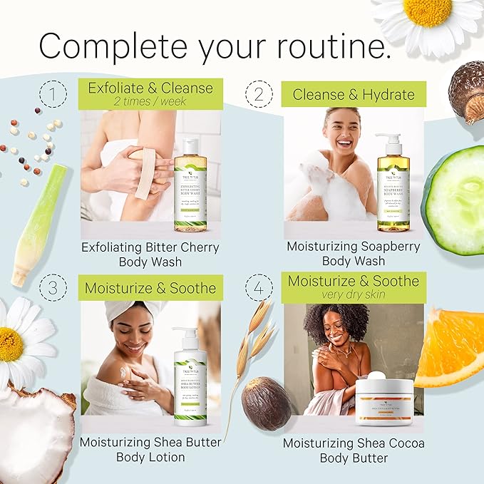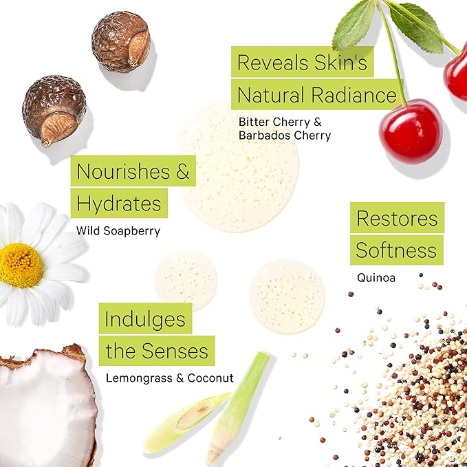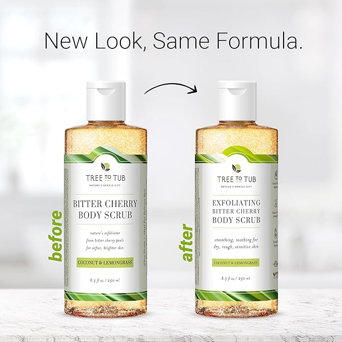 Tree to Tub Bitter Cherry Coconut Exfoliating Body Wash - Gentle Exfoliating Body Scrub for Sensitive Skin - Skin Exfoliator for Body for Women & Men w/Natural Soapberry, Natural Cherry, Organic Rice