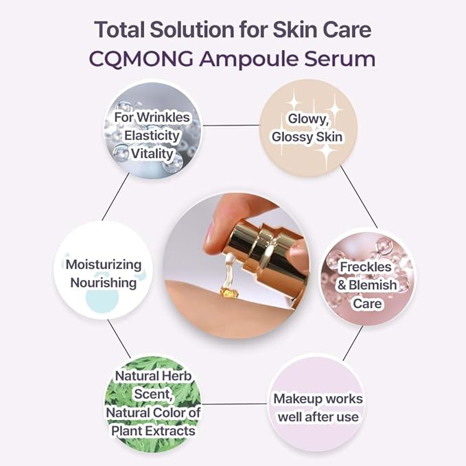 Ampoule Facial Serum 1.69 fl oz for Glowy Skin, Hydrating, Wrinkles, Dark spot, Fleckles & Blemish/Hyaluronic Acid, Vitamin C, Collagen, Peptide, Niacinamide/Natural Herb Scent/Korean