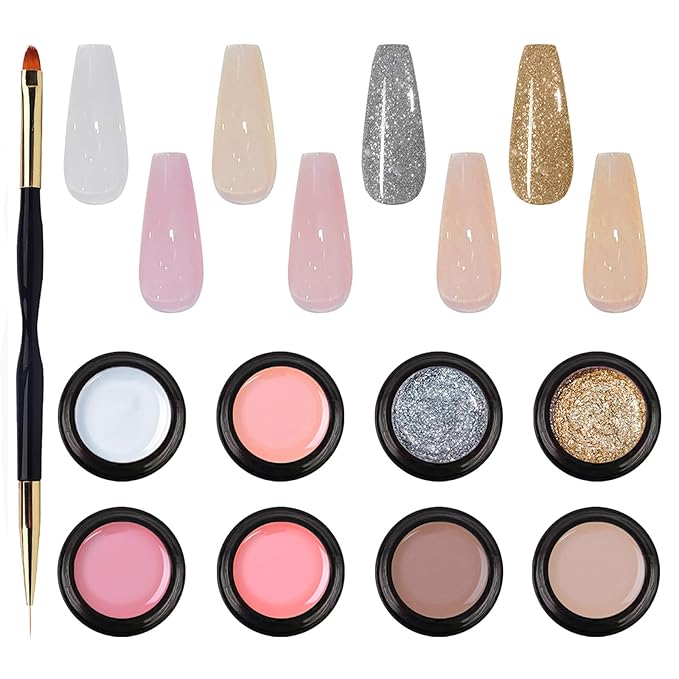 KWOLYKIM Jelly Gel Nail Polish Set - 8 Colors, Sheer Base Builder & Glitter Liner Kit, Nude Pink Milky White Gel Polish for Nail Strengthener & Repair, DIY Salon Kit for Women