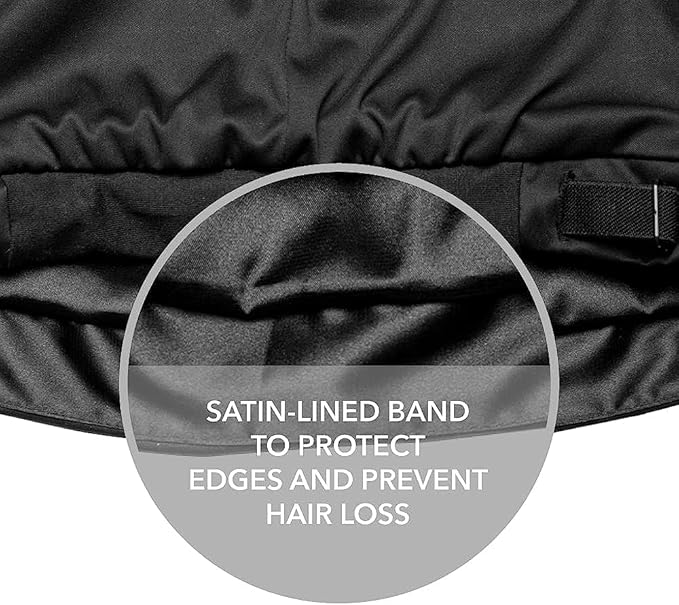 - ADJUSTABLE BAND AND ROOMY INTERIOR: Accommodates various hair lengths, styles, textures. A secure and comfortable fit just for you. You can also store excess elastic in a convenient pocket at the nape of your neck.