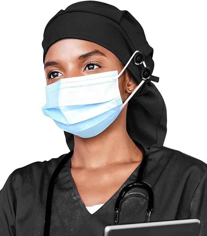 - Adjustable Elastic Band with Ponytail Pouch Design -- the ponytail pouch helps you adjust your hair,makes you look professional and brisk.Ribbons over the pony-pouch provide extra security for keeping hair in place,maintain your hairstyle during work and keep your head clean&neat.Bouffant cap for long hair fit Large or Small Head, more adorable to wear. They are natural, breathable and very comfortable to wear all day;Keeps your forehead dry and comfortable