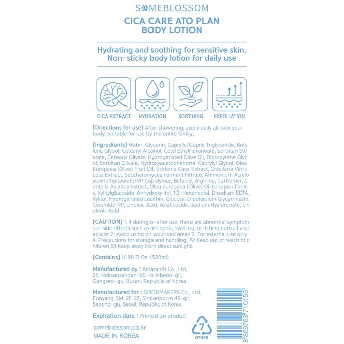 Body Lotion 17 Fl oz. | Soothing & Moisturizing Vegan Unscented for Dry skin with Cica & Ceramide, Hypoallergenic | Korean skincare